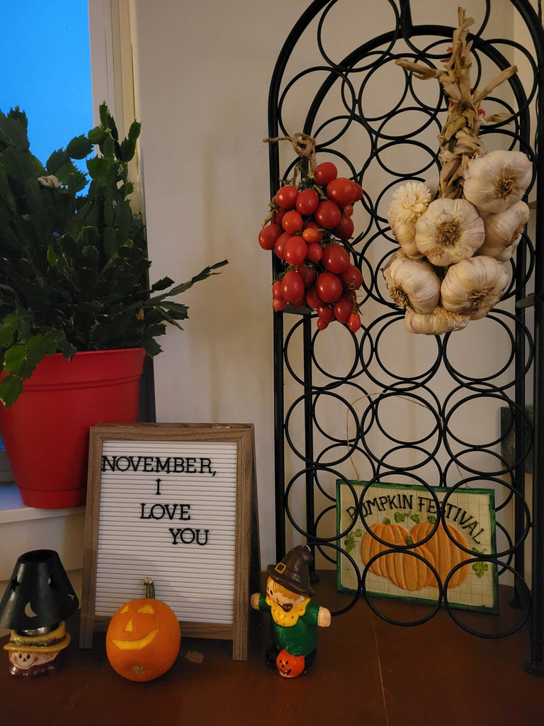 We love growing ramallet tomatoes, so when we found out about Tomaquet de Penjar we had to try them. In Catalan, Penjar means to "hang up" which is exactly what ramallet tomatoes are best for- hanging up in beautiful red and green clusters at the end of the season, to be eaten through winter. As the fruits hang, they will continue to ripen and then begin to shrivel slightly. However, because of the unique genetics of ramallet tomatoes, their thick skins make it so that this drying out happens very slowly. Still totally edible and delicious, these shriveled tomatoes are on their way to becoming sun dried tomatoes and can be added at any stage of drying to pastes and sauces, grilled, or our personal favorite- broiled and added to pizza. Tomaquet de Penjar fruit are the size of a cherry tomato, have pointy ends, and taste great. Their flavor intensifies as they dry down, making them a fun winter snack.
